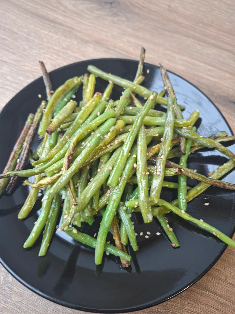 Da habe ich die frischen Bohnen aus Zeitgründen leider erst einfrieren müssen und sie dann gefroren verarbeitet. Dies würde ich nicht nochmal machen, da ich das Gefühl hatte, sie waren noch roh. Die 3-4 Knoblauchzehen hatten es auch in sich, haben es aber auch super interessant gemacht. Dies kann man natürlich nach persönlichen Vorlieben noch verfeinern.